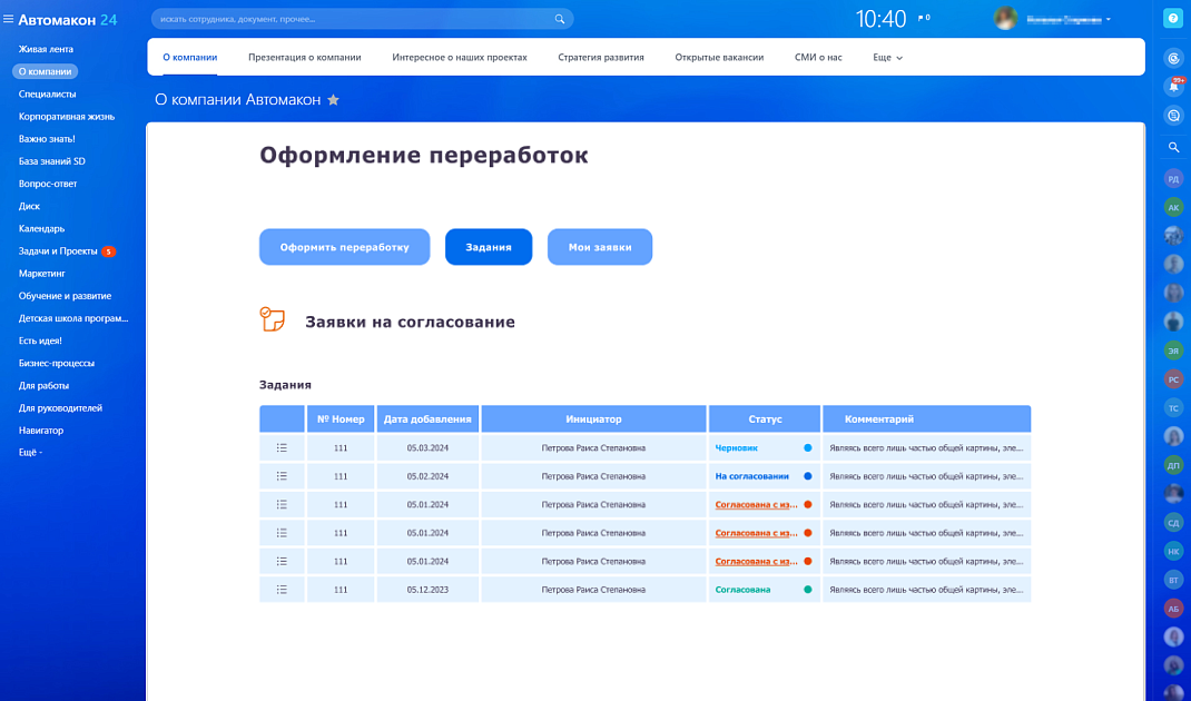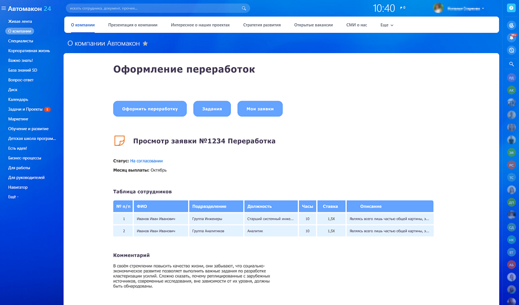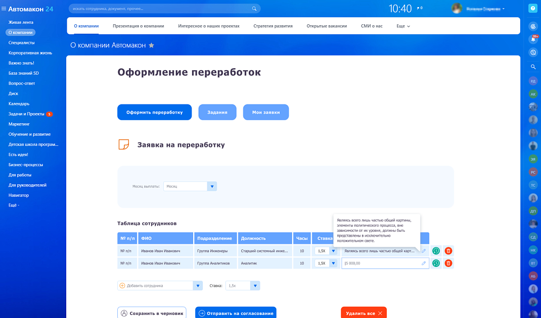• Создание высоконагруженной системы для стабильной работы с большим объемом данных и запросов сотрудников