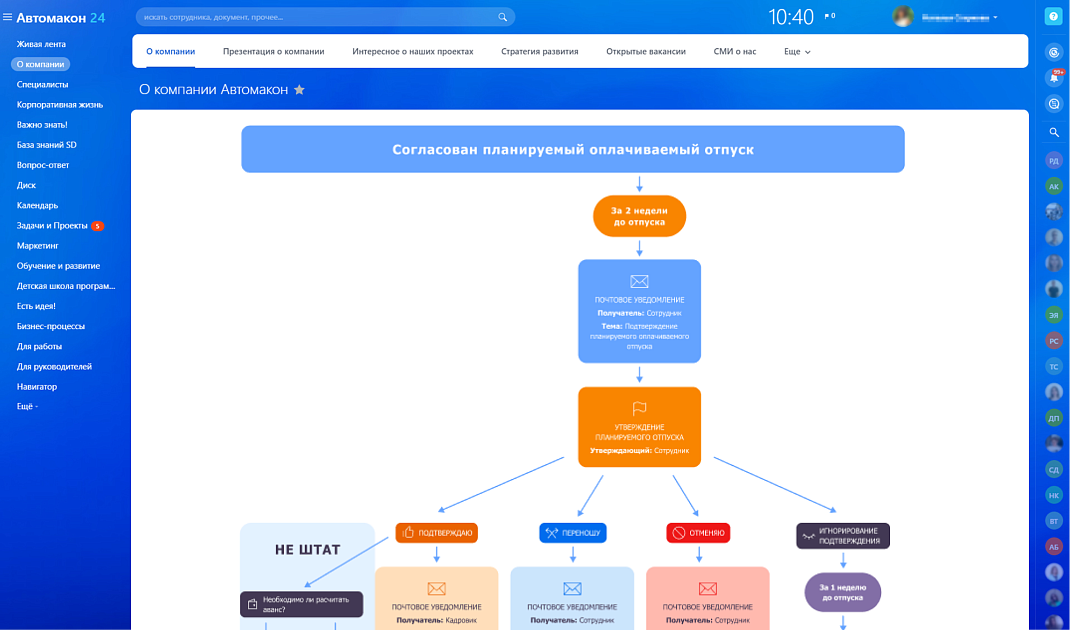 Создали автоматизированные цепочки для управления отпусками, премиями и компенсациями, а также обработкой обращений сотрудников