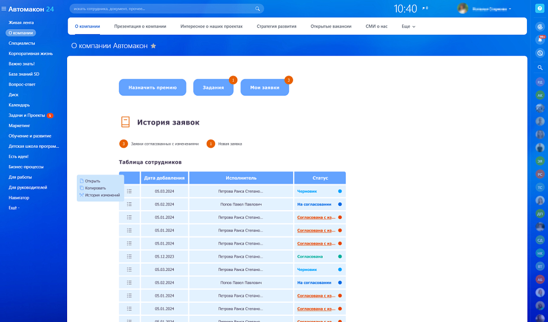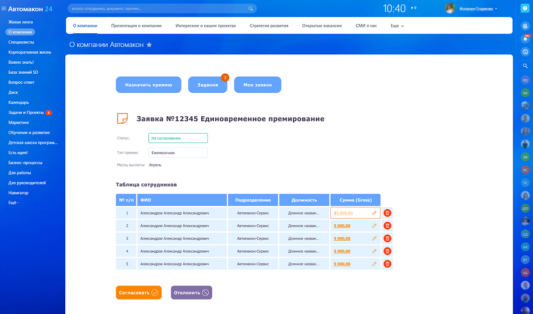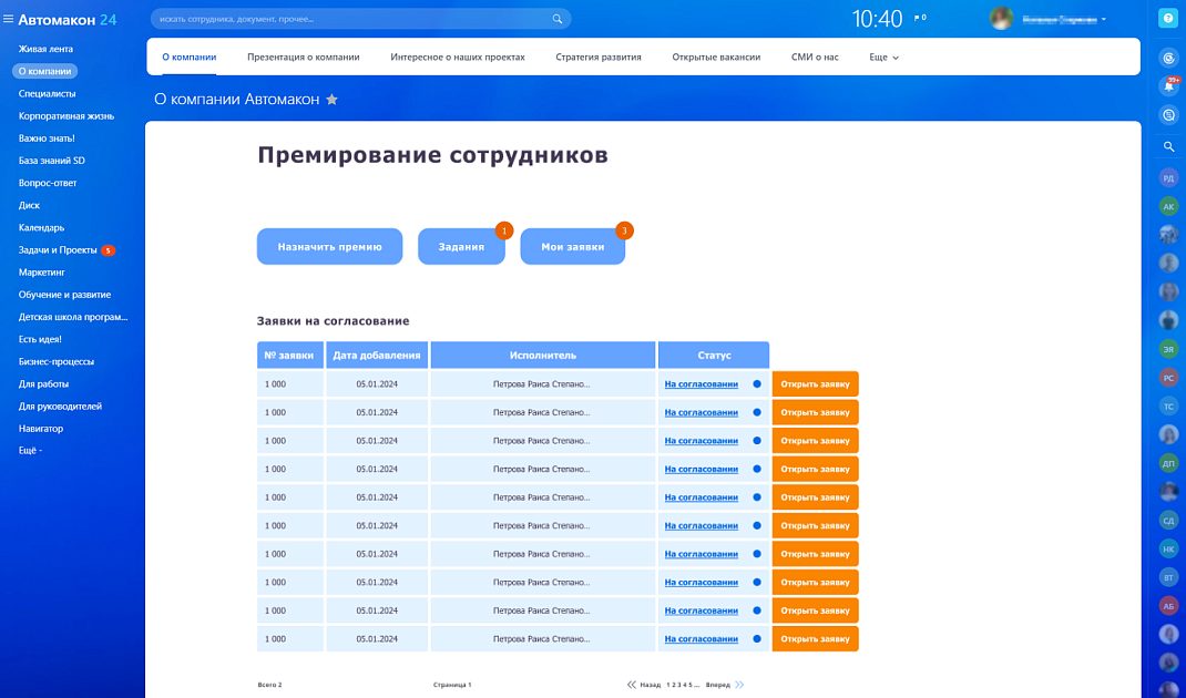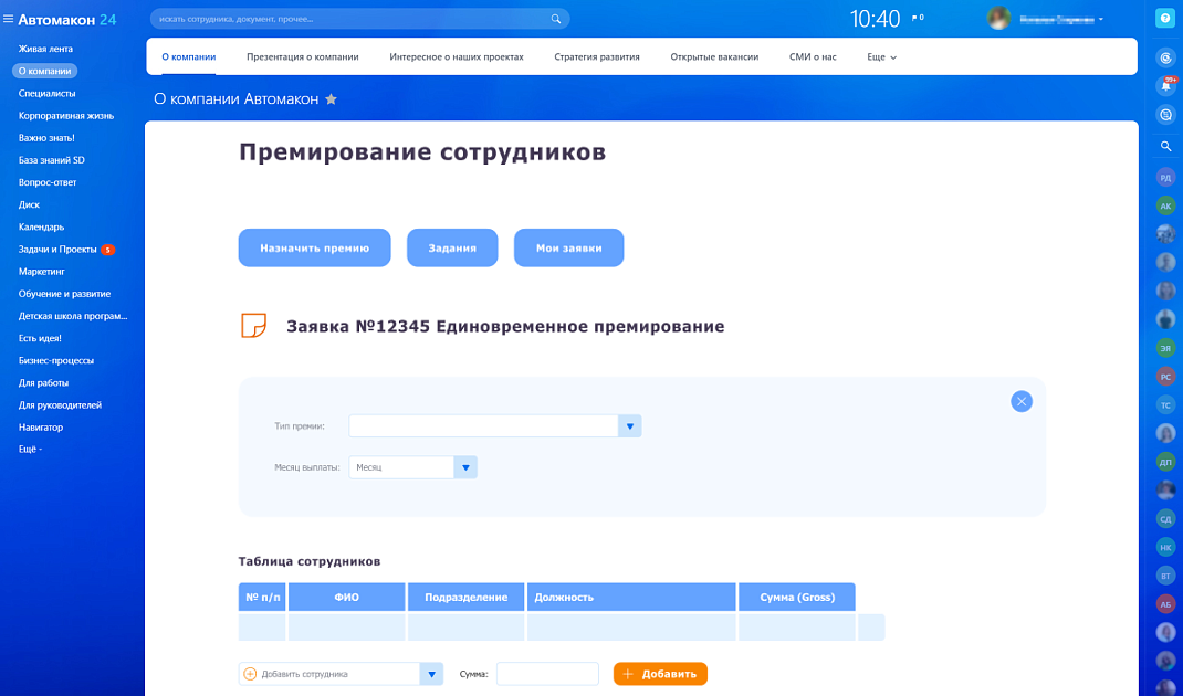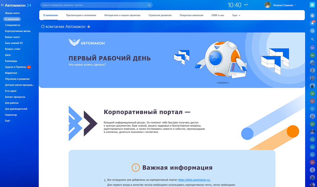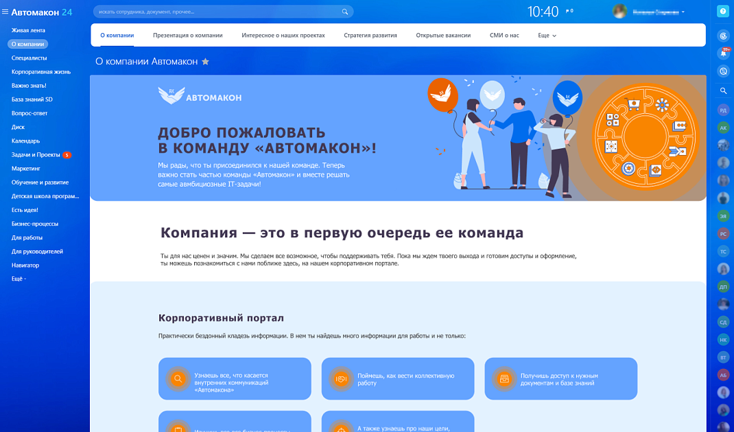 Создание корпоративного портала на базе «Битрикс24» для объединения разрозненных бизнес-процессов и улучшения взаимодействия подразделений компании «Автомакон».