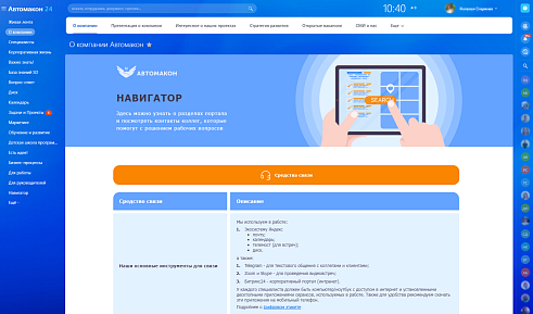 • Единый корпоративный портал с лентой новостей и оргструктурой.